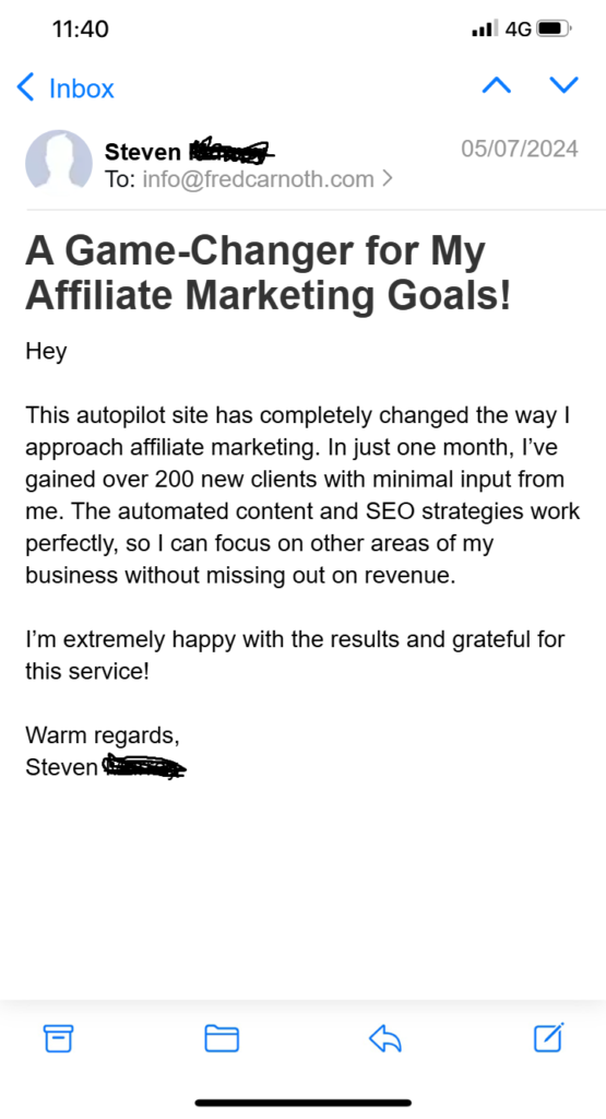 Please note that while this service provides a Autopilot Autoblog Website, there are no guarantees of any specific income or results. The testimonials and examples used on this site reflect actual users’ results, but your results may vary. These testimonials are not a guarantee of income or profits. Success in any business involves risk, effort, and dedication, and individual experiences and results will differ. Success varies based on individual effort, and the majority of individuals will not take the action required to see significant results. This is not a ‘get-rich-quick’ scheme, and results depend entirely on your work, market circumstances, and other factors outside our control.